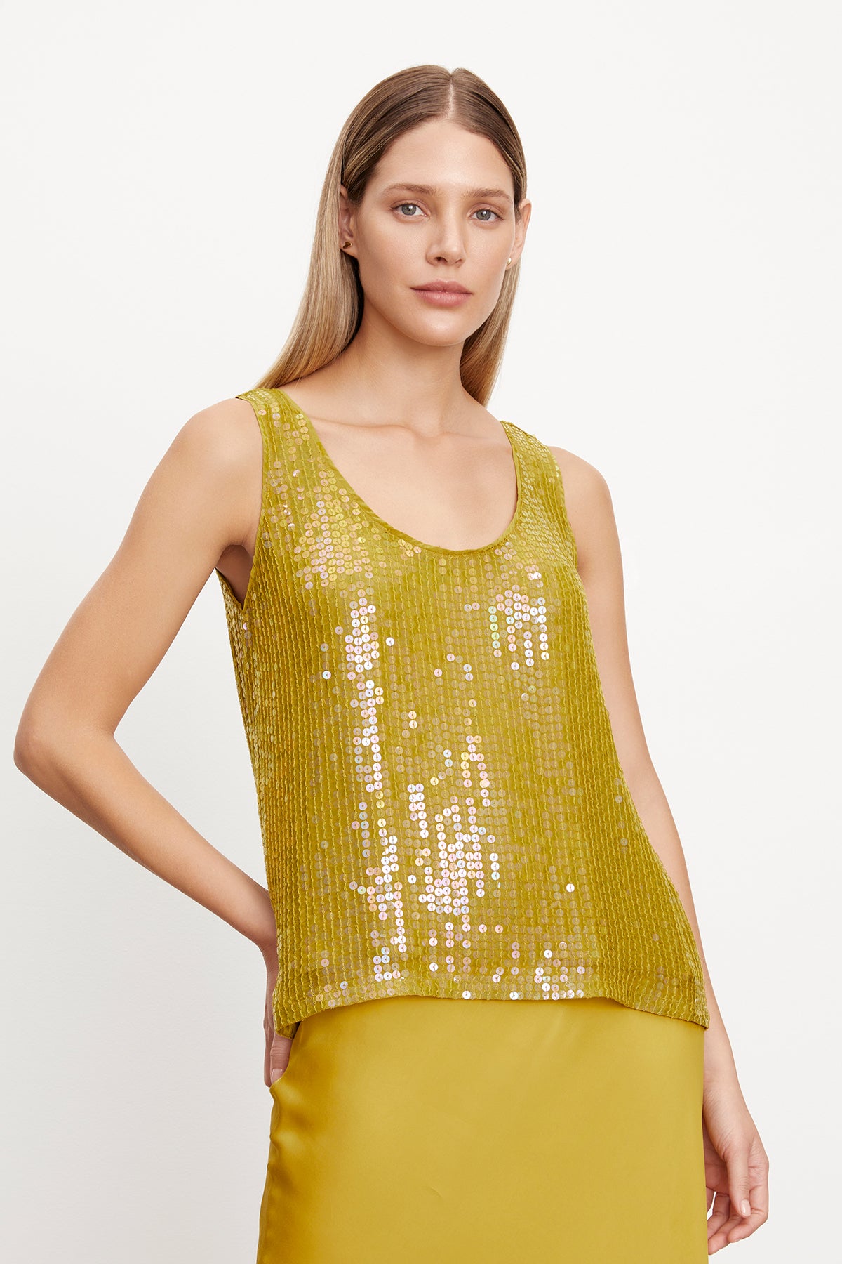 Source : www.yesstyle.comBEHATI SEQUIN SCOOP NECK HIGH LOW HEM TANK TOP – Velvet by Graham